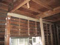 左:屋根 野路板傷み強度不足、 野地板を点検部分交換